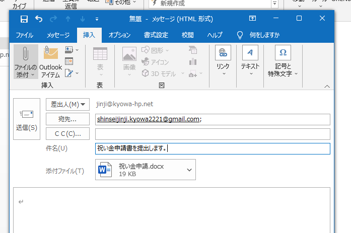 申請窓口は 総務人事部提出分は shiseijinji.kyowa2221@gmail.com
