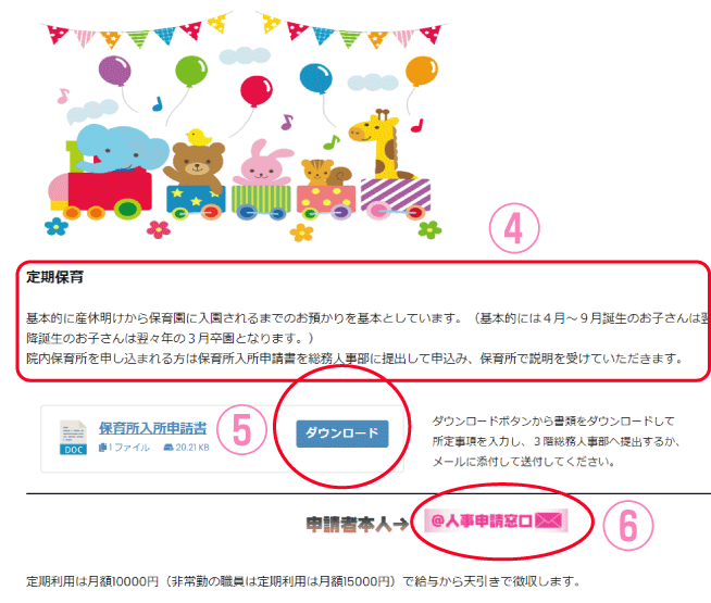 ⑥ @人事申請窓口や@総務申請窓口となっているボタンは申請先メールアドレスとリンクしています。